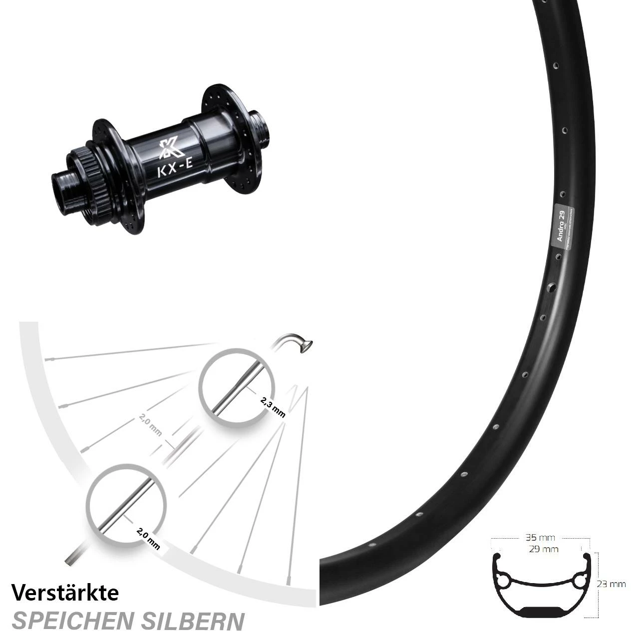 Produktbeschreibung 27,5 Zoll Vorderrad KX-E Nabe Centerlock 15×100 mm schwarz Ryde Andra 29 für Steckachse