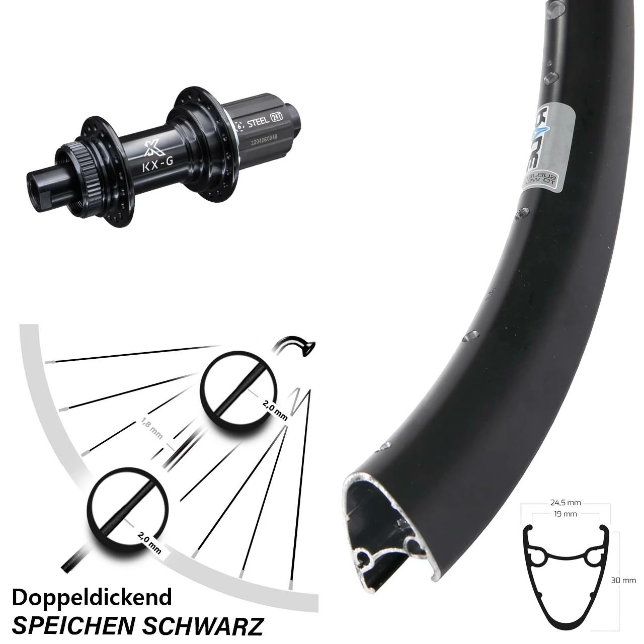 28-29 Zoll Hinterrad Ryde Dutch 19 Hochprofil mit KX-GS schwarz Nabe mit Doppeldickendspeichen