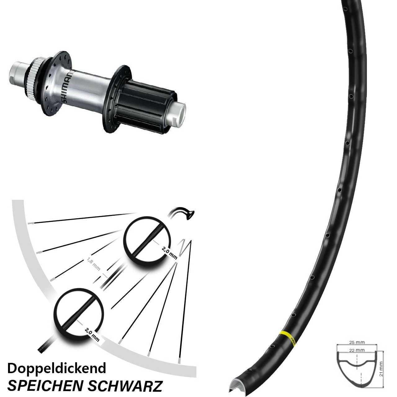 Technische Daten Hinterrad Mavic A 1022 schwarz und Nabe Shimano FH-RS770