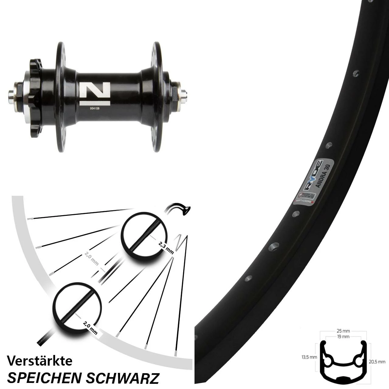 Technische Daten Vorderrad Ryde Andra 30 Disc schwarz mit Nabe Novatec D041SB schwarz