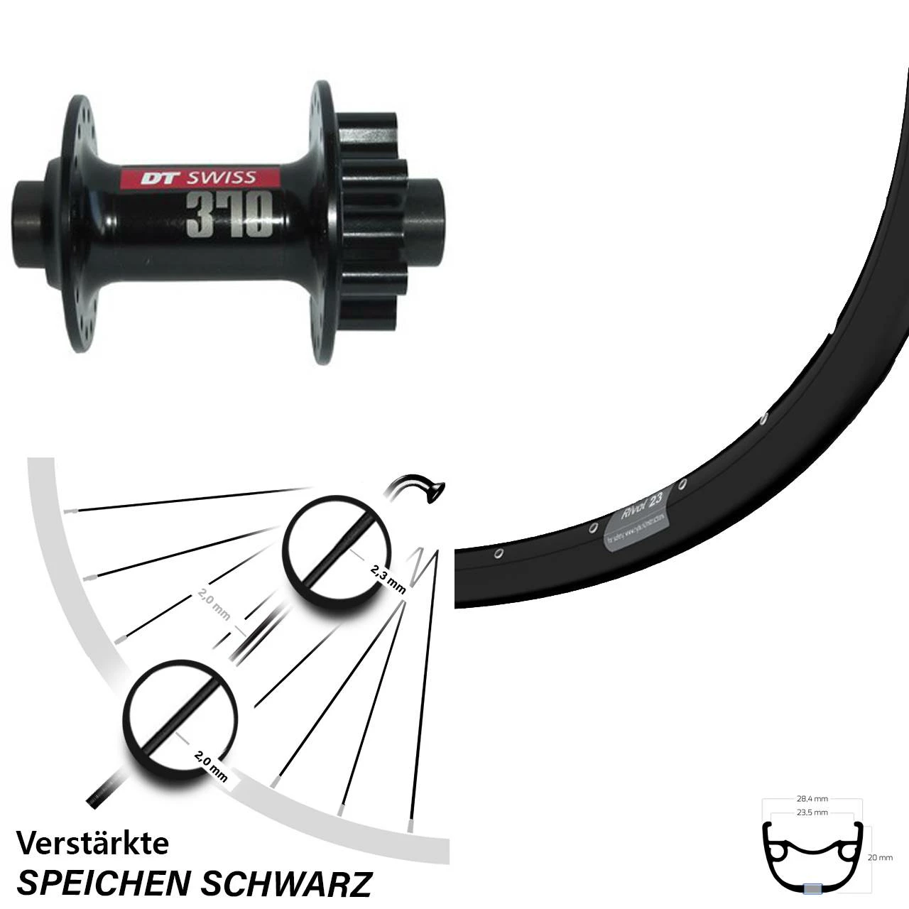 Technische Daten Vorderrad Ryde Rival 23 Disc schwarz mit Nabe DT Swiss 370 Disc 6-Loch 15/100