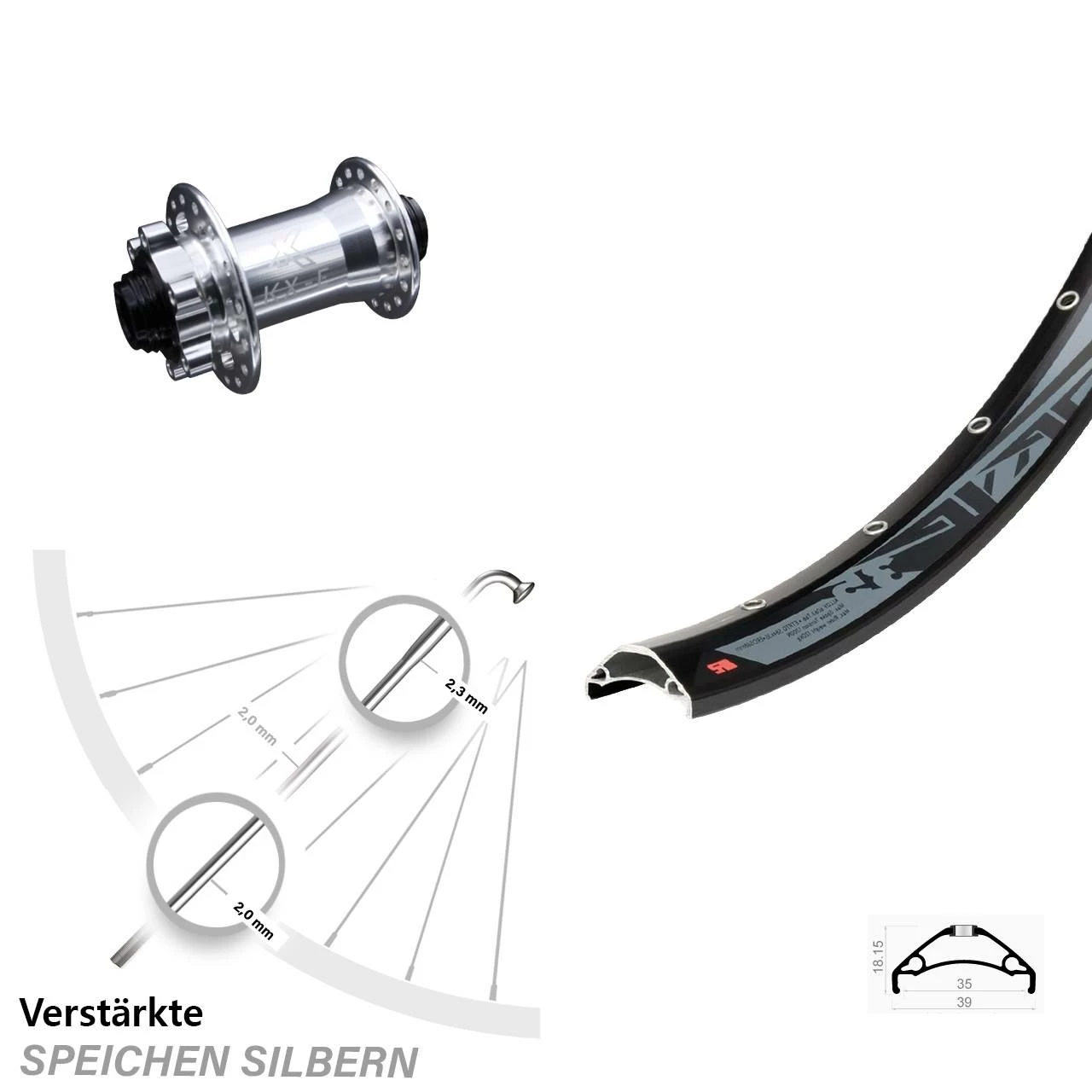 Technische Daten Vorderrad Rodi TRYP 35 schwarz mit Nabe KX-E Vorderradnabe 6-Loch 15/100 silbern