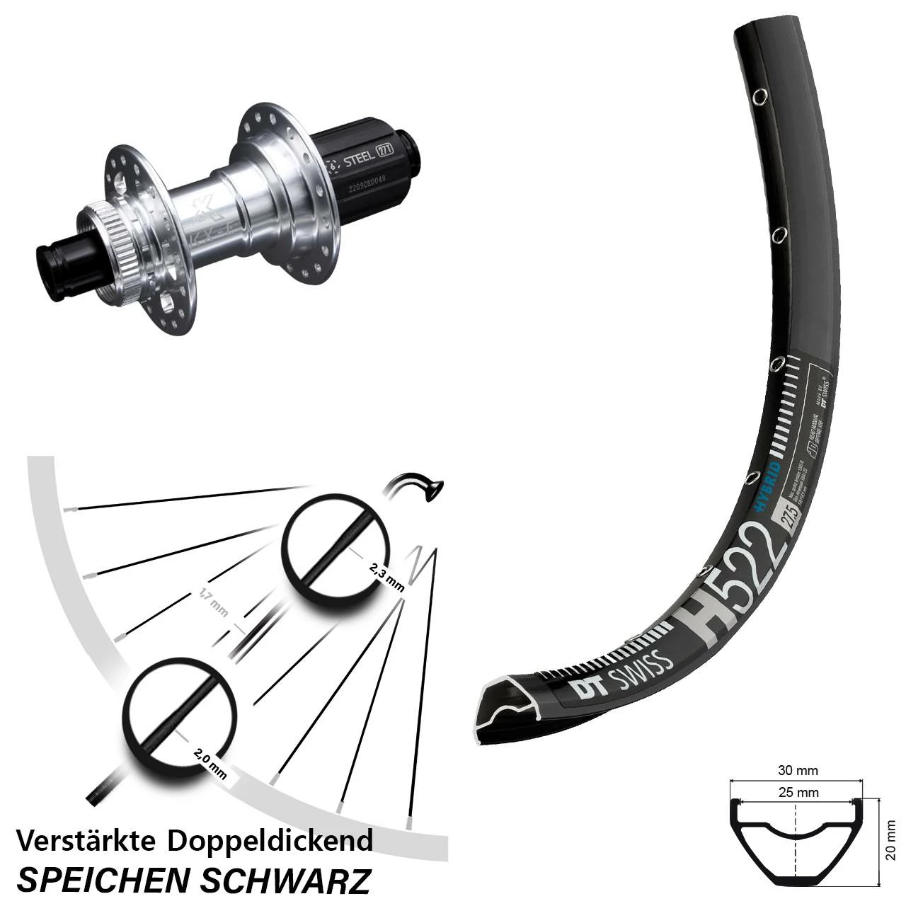 - Felge: DT Swiss H 522 Disc schwarz