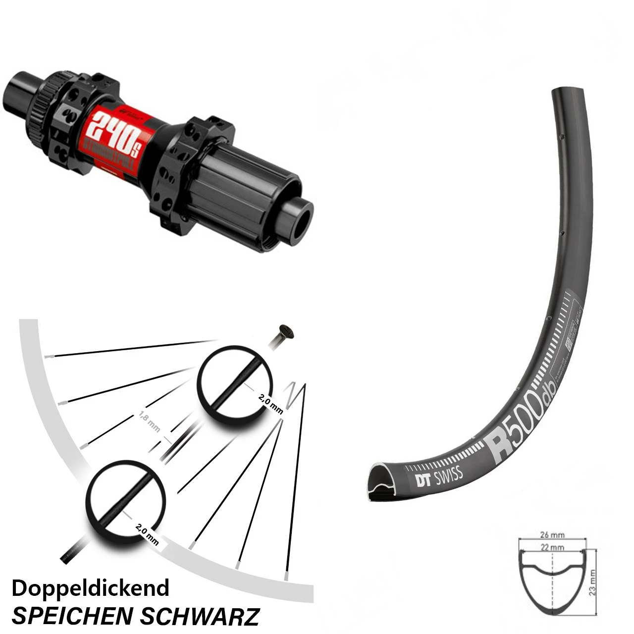 Technische Daten Hinterrad DT Swiss R 500 DB Disc schwarz und Nabe DT Swiss 240 Road Straightpull Centerlock 12/142