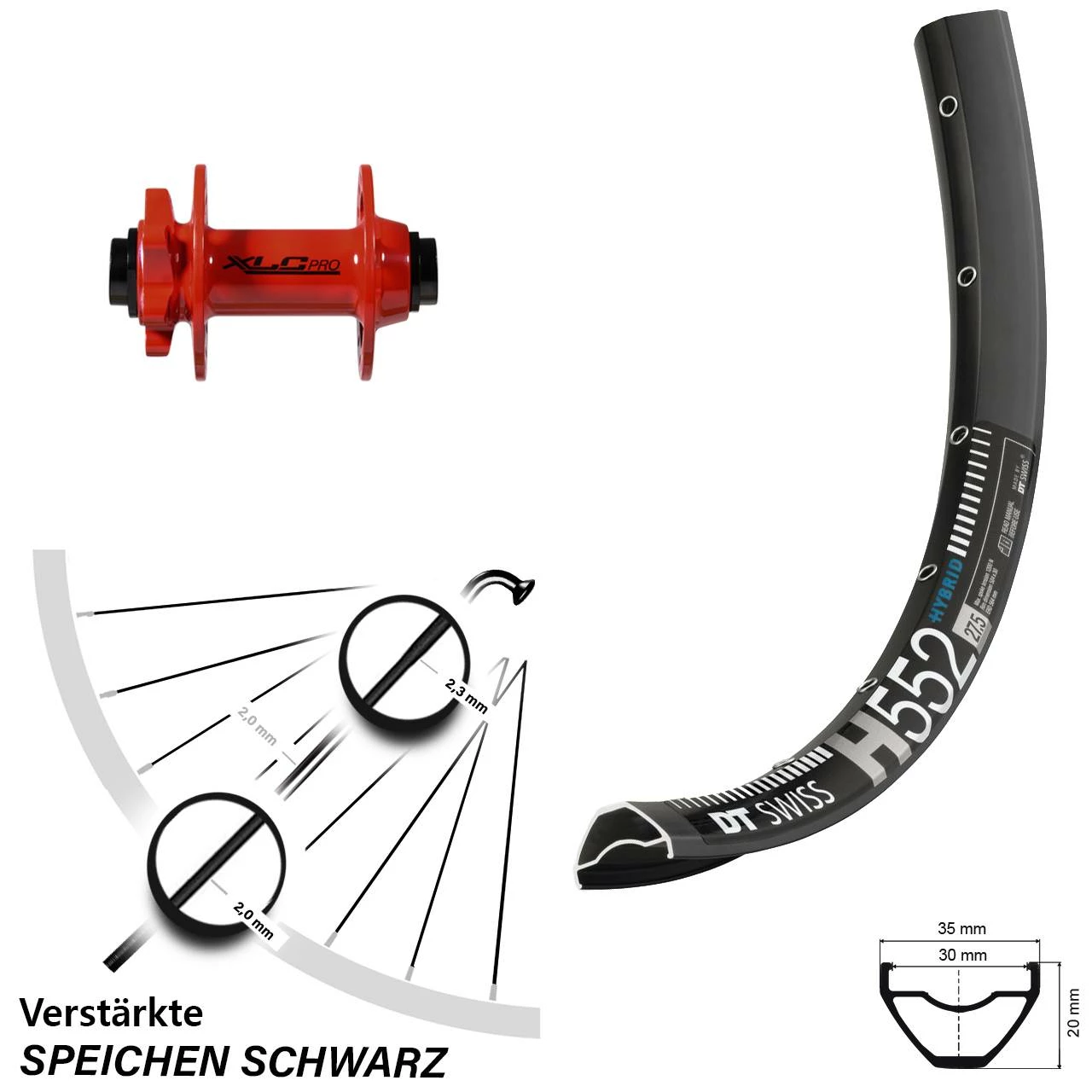 Produktbeschreibung 27,5+ Zoll Vorderrad XLC Evo rot mit DT Swiss H 552
