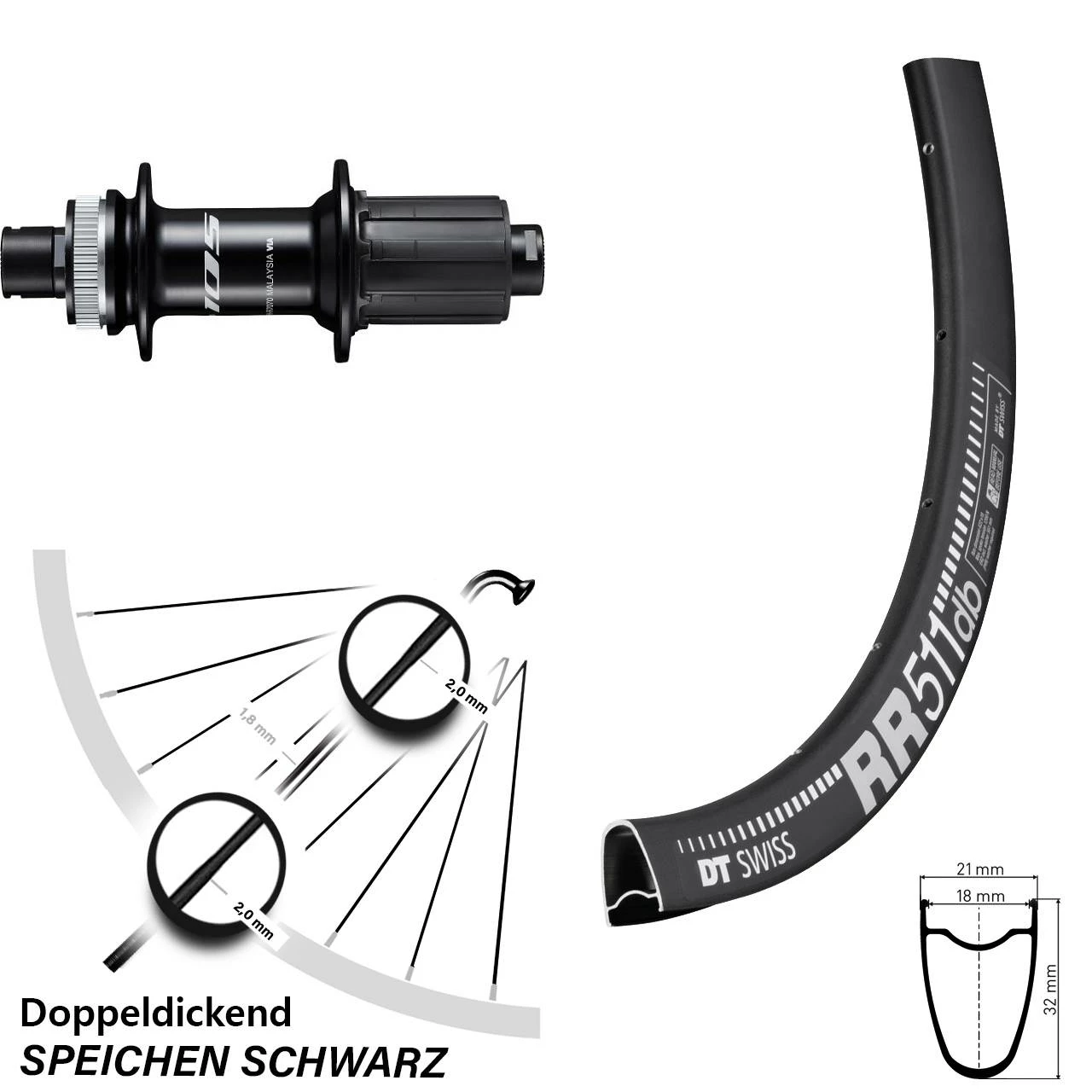 Technische Daten Hinterrad DT Swiss RR 511 DB Disc schwarz und Nabe Shimano FH-R7070 schwarz