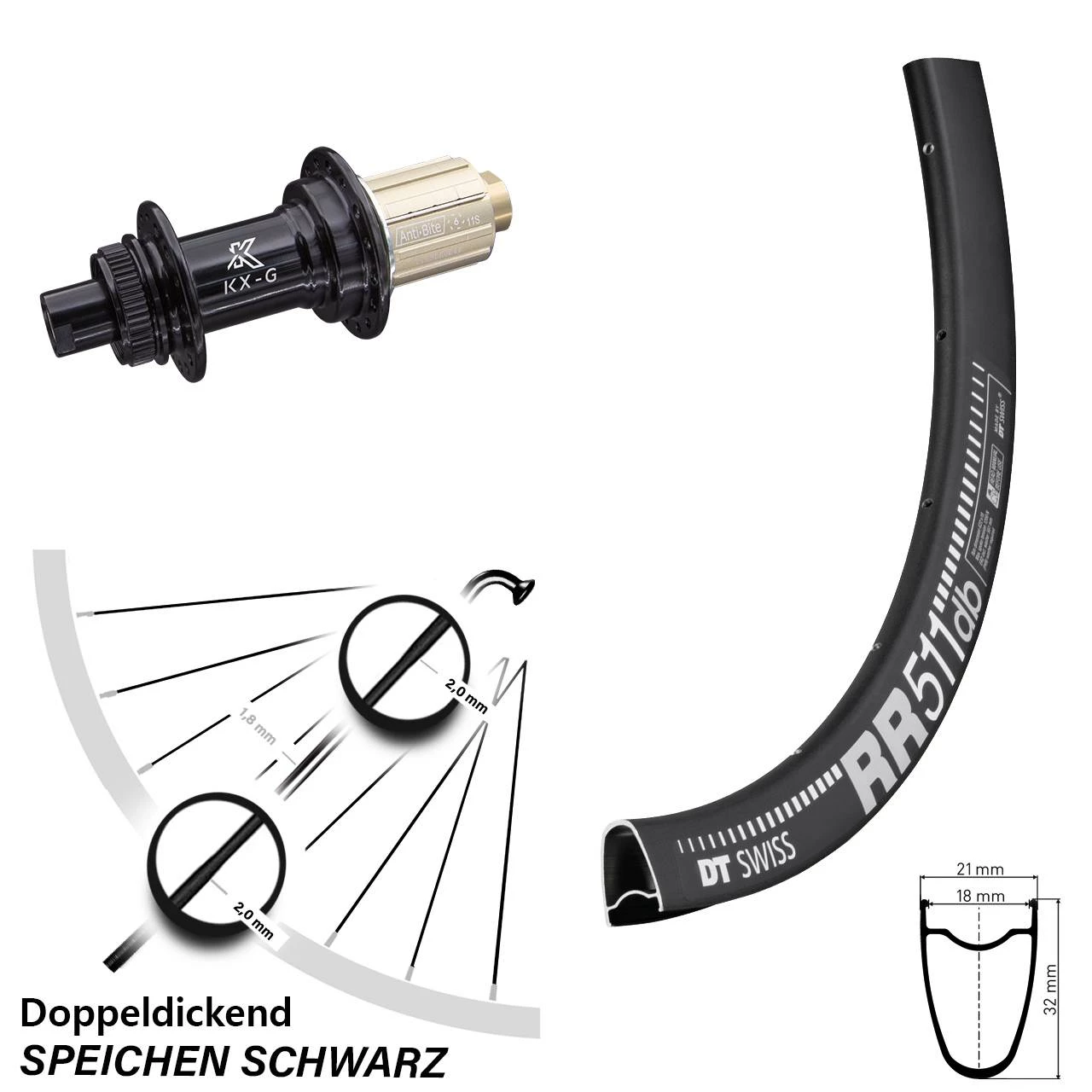 Produktbeschreibung 28 Zoll Hinteres Rad DT Swiss RR 511 DB mit KX-G Steckachse 12×142 mm 11-fach Nabe