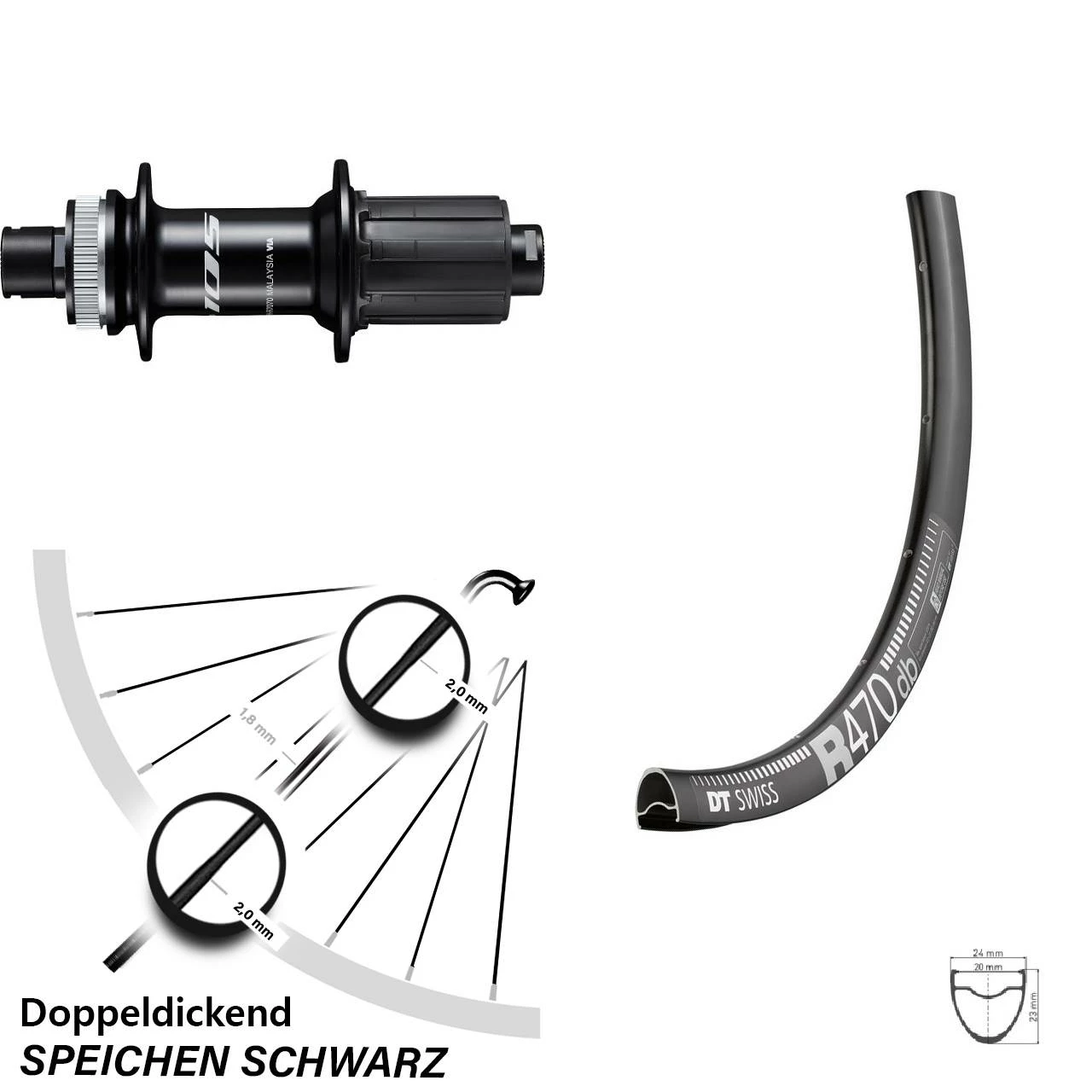 28 Zoll Hinterrad Rennrad/Gravel DT Swiss 470 DB Shimano FH-R7070 mit Doppeldickendspeichen