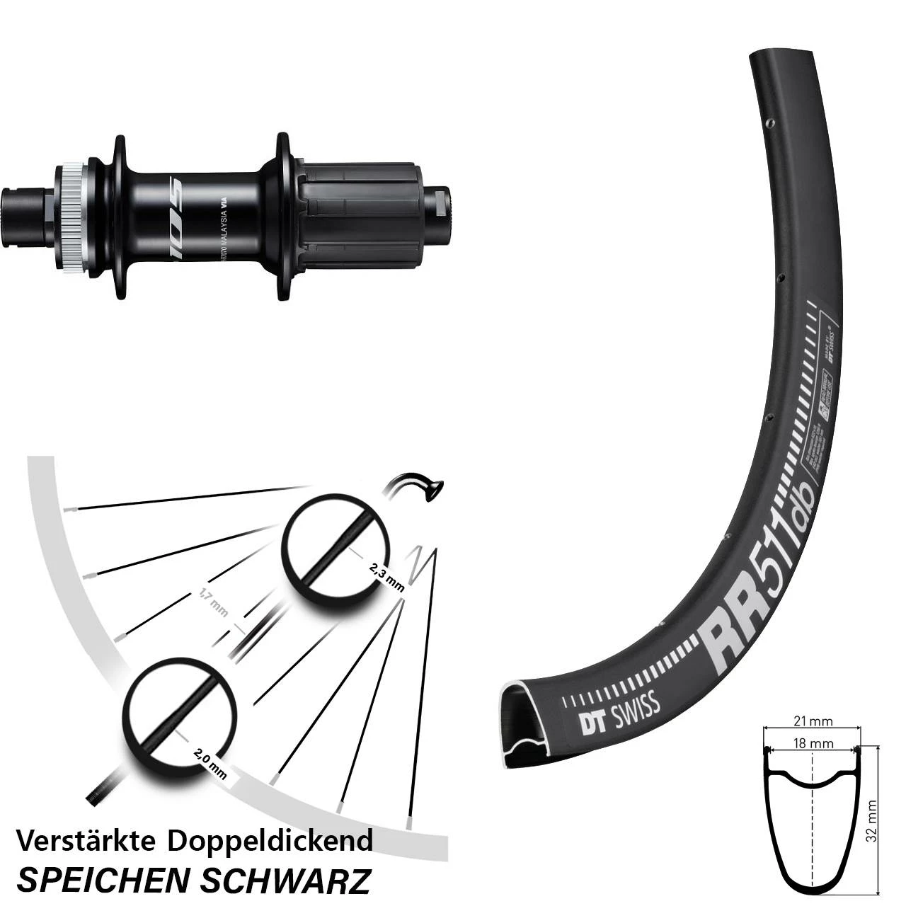 Technische Daten Hinterrad DT Swiss RR 511 DB Disc schwarz und Nabe Shimano FH-R7070 schwarz