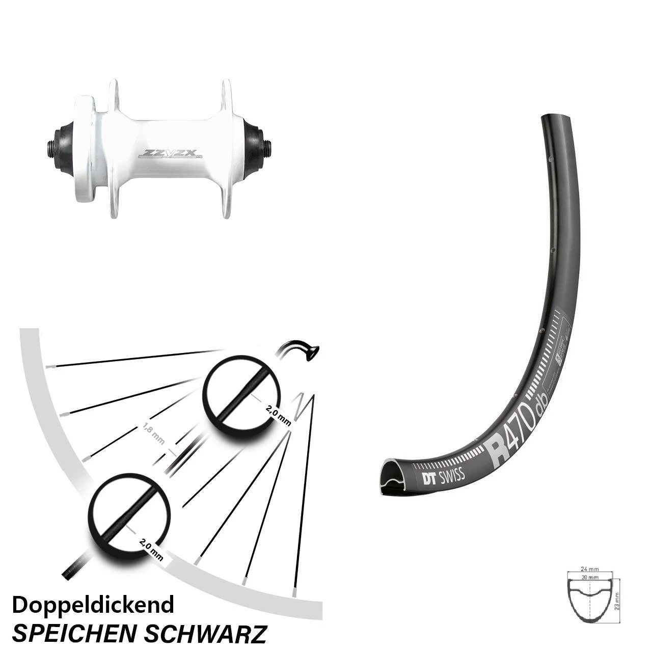 Produktbeschreibung 28 Zoll Vorderrad DT Swiss R 470 DB mit Formula Nabe ZZYZX weiß 6-loch 5/100 mm