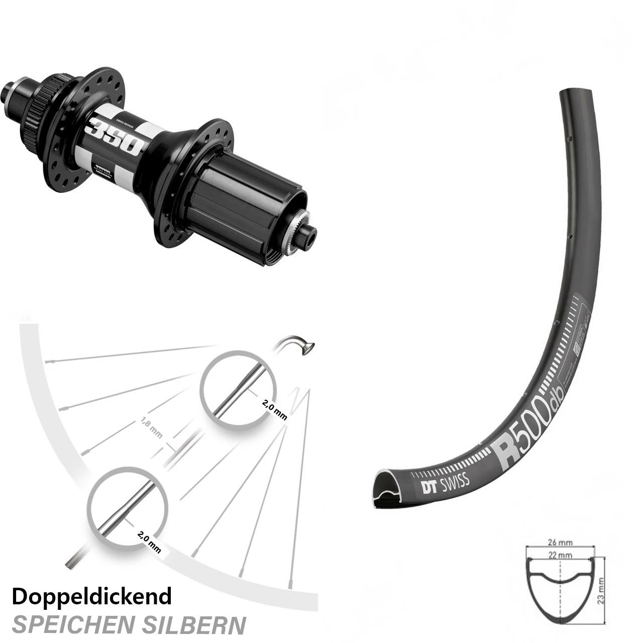- 350 DT Swiss R 500 Hinteres Rad 28 Zoll für Schnellspanner 11-fach Centerlock