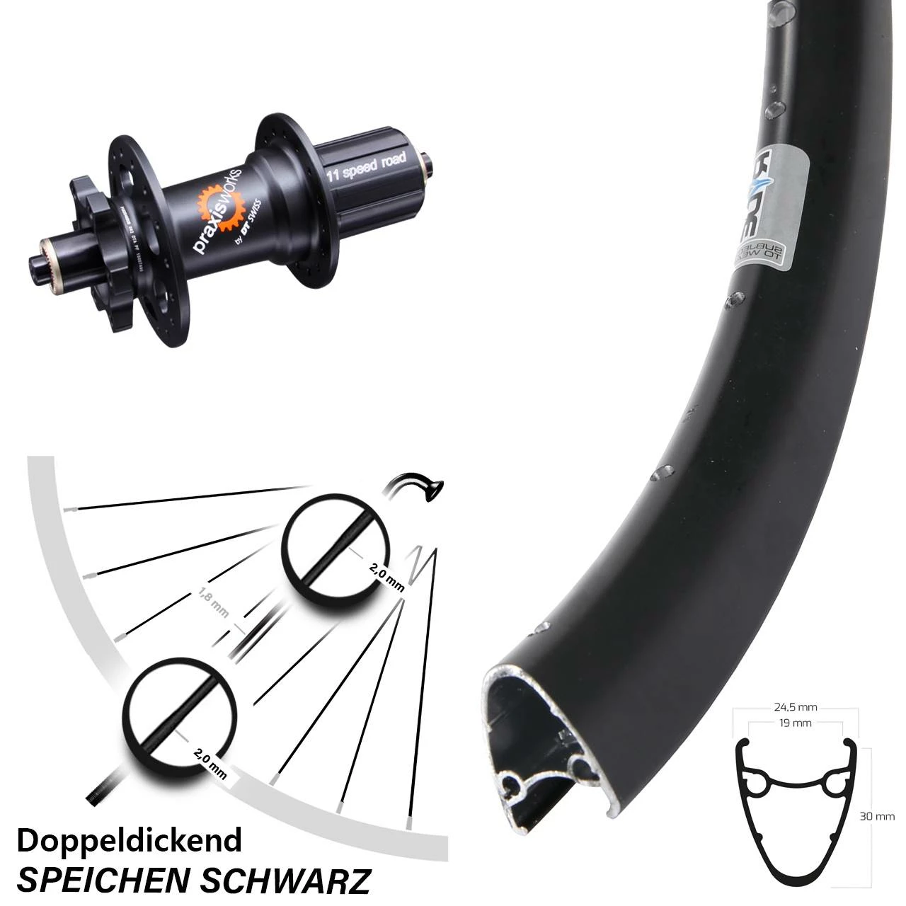 - Felge Maße: Höhe 30 mm / Breite 24,5 mm