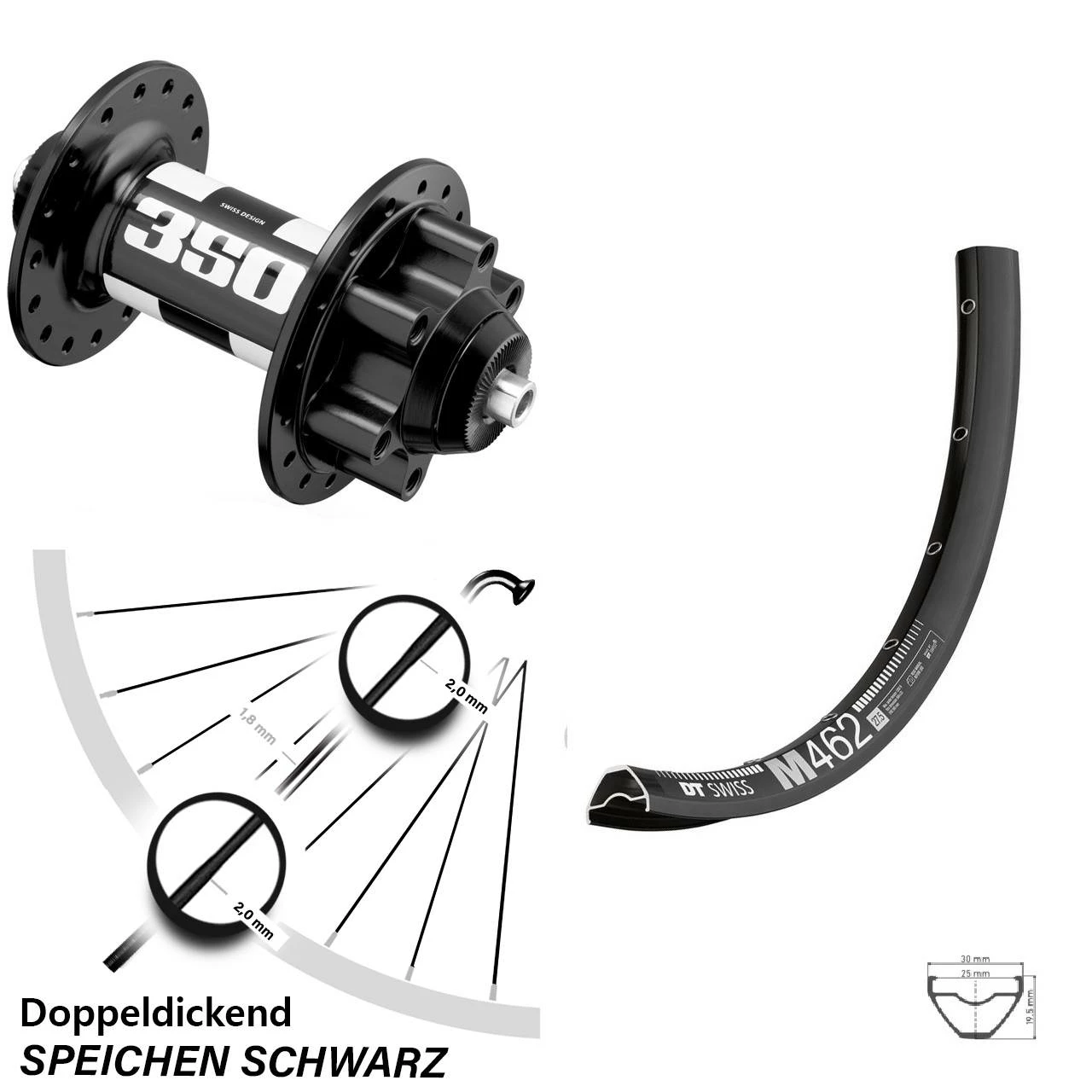 Technische Daten Vorderrad DT Swiss M 462 Disc schwarz mit Nabe DT Swiss 350 Disc 6-Loch 5/100