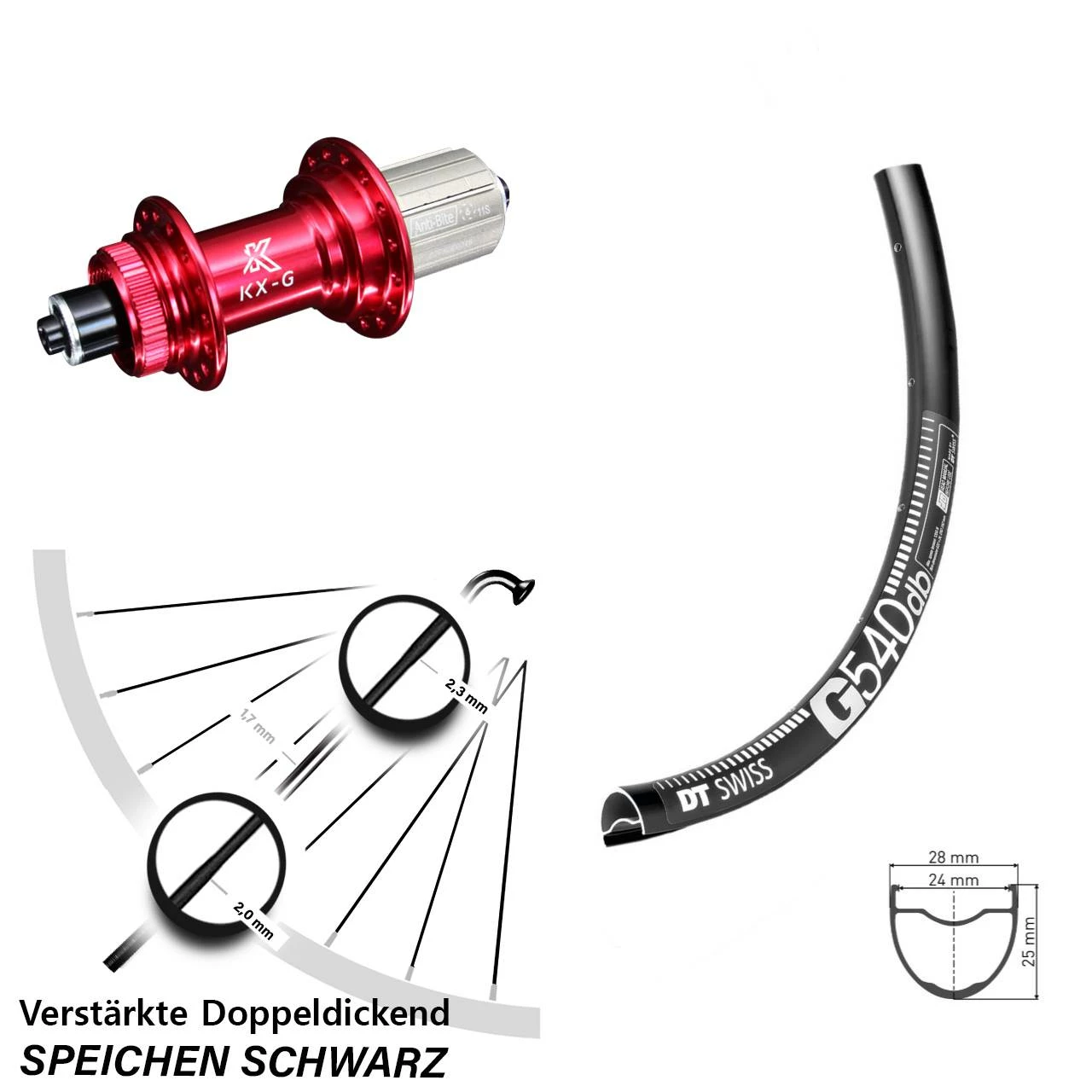 Technische Daten Hinterrad DT Swiss G 540 DB Disc schwarz und Nabe KX-G Hinterradnabe 5/135 Centerlock Shimano rot