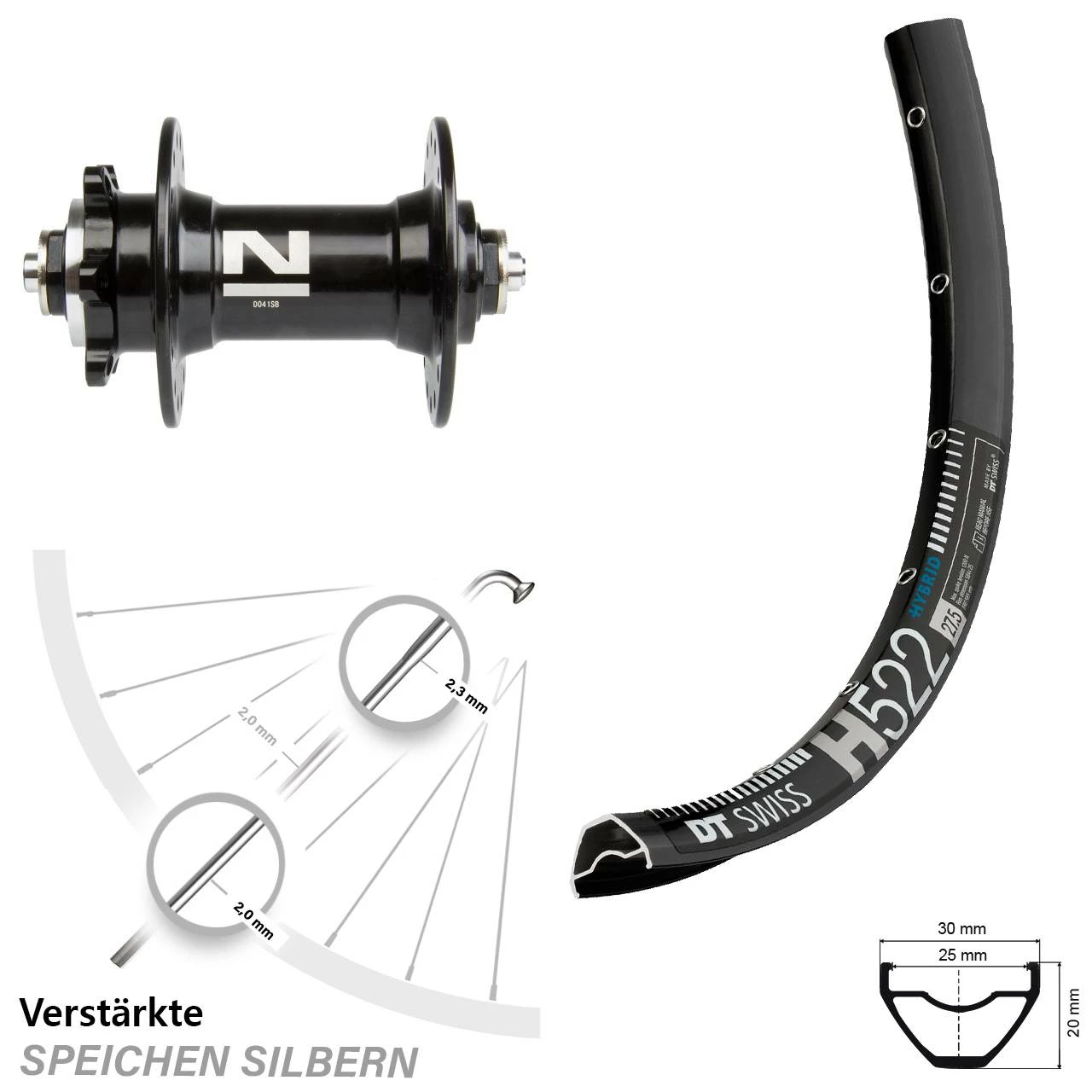 Technische Daten Vorderrad DT Swiss H 522 Disc schwarz mit Nabe Novatec D041SB schwarz