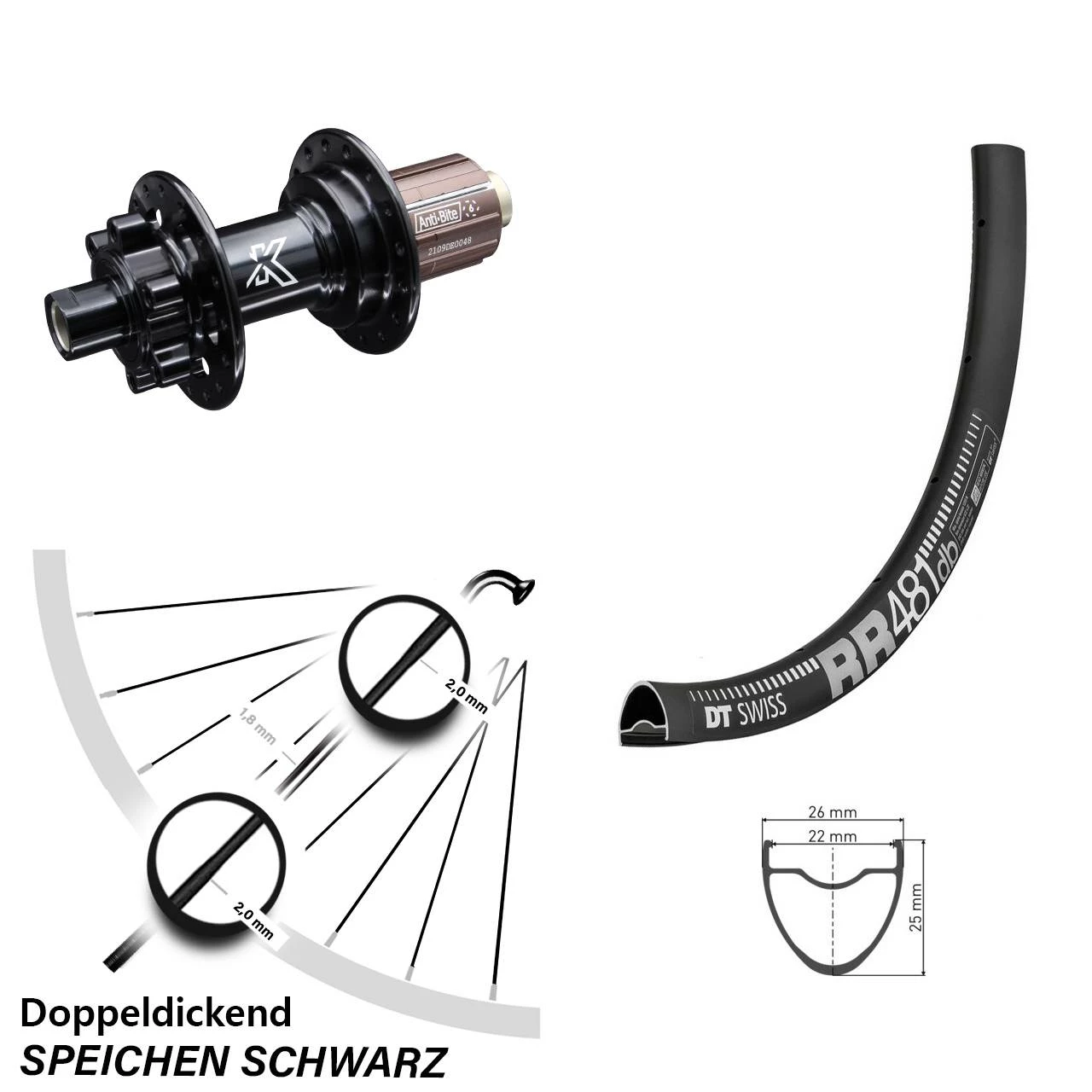 DT Swiss RR 481 DB Disc-Hinterrad 28 Zoll mit KX-M schwarz 12×142 mm Steckachse 6-loch mit Doppeldickendspeichen