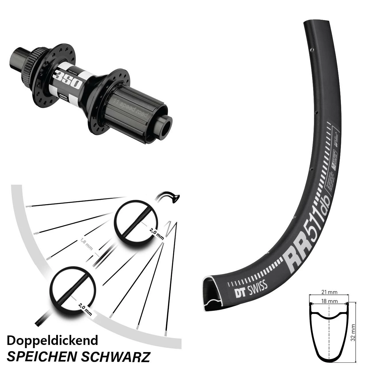 DT Swiss RR 511 Hinterrad 28 Zoll mit 350 Road Nabe mit Doppeldickendspeichen