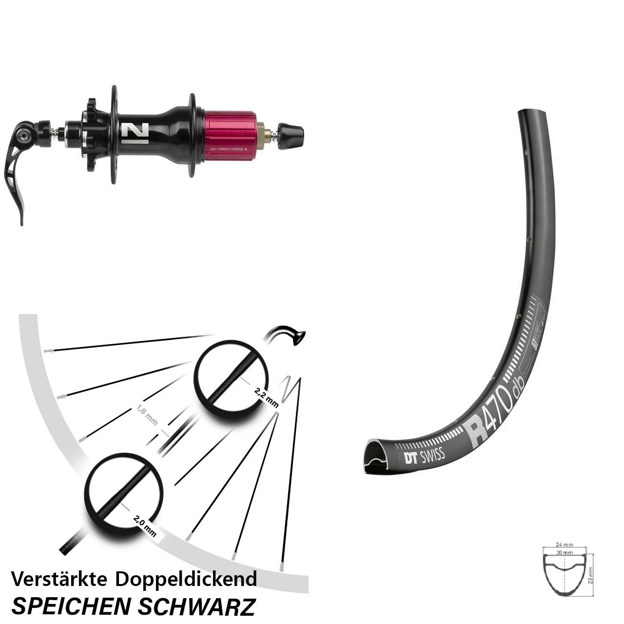 Technische Daten Hinterrad DT Swiss R 470 Disc schwarz und Nabe Novatec D792SB Superlight schwarz