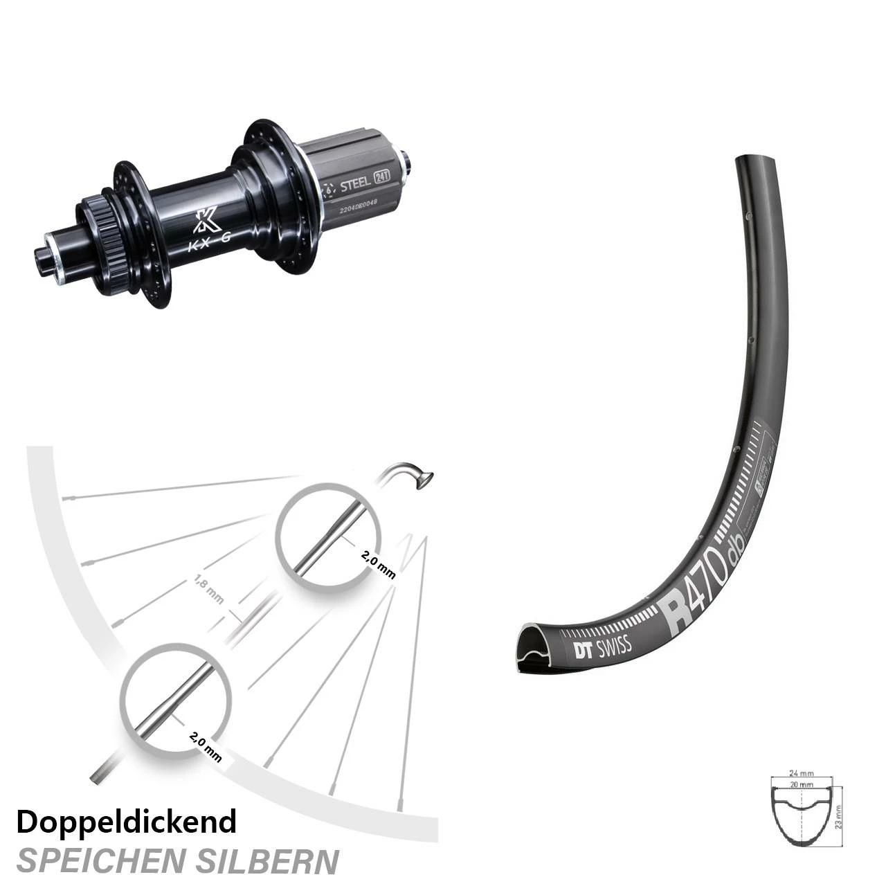 - KX-G/S schwarz Centerlock DT Swiss R 470 DB Hinterrad 28 Zoll für Schnellspanner