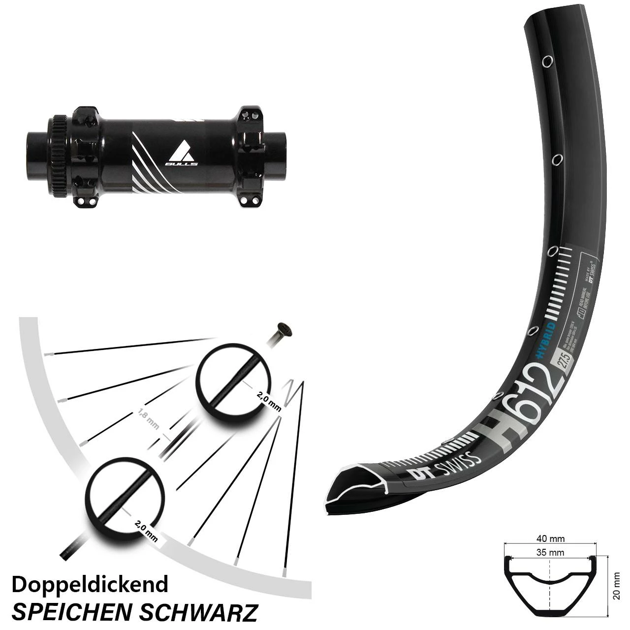 Technische Daten Vorderrad DT Swiss H 612 Disc schwarz mit Nabe Formula TC-711 Bulls Boost Front schwarz