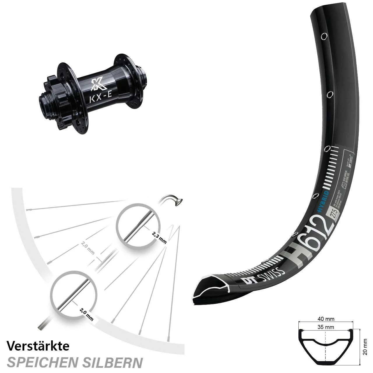 - Vorderrad 27,5+ Zoll KX-E Nabe 15×100 mm 6-loch DT Swiss H 612 E-Bike