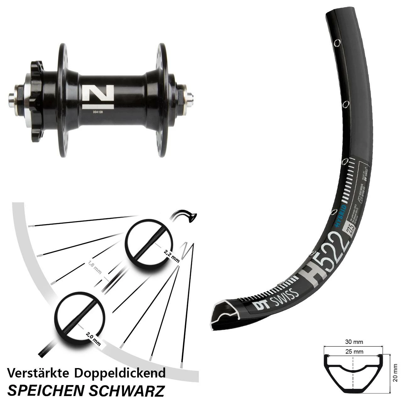 Technische Daten Vorderrad DT Swiss H 522 Disc schwarz mit Nabe Novatec D041SB schwarz