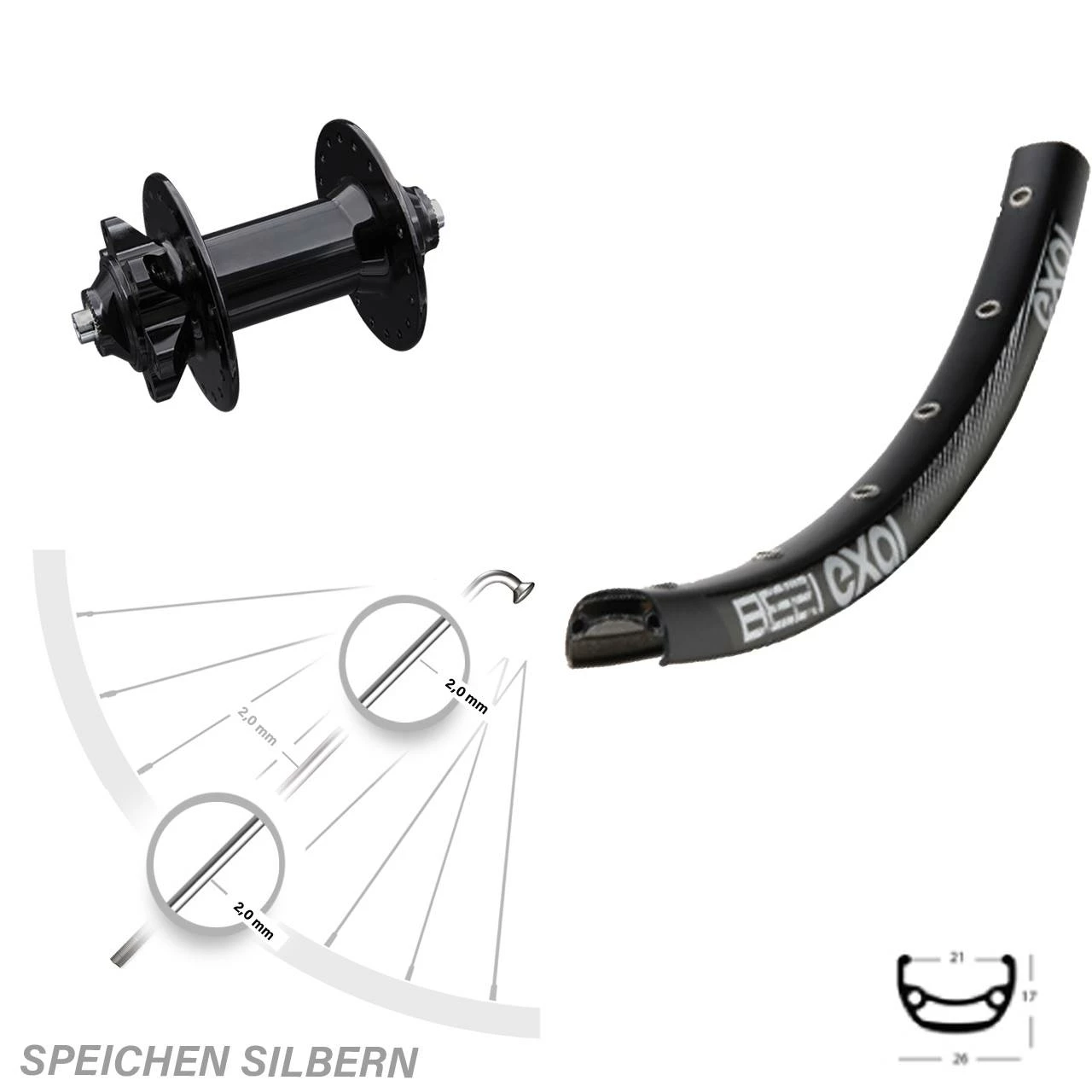 Technische Daten Vorderrad Exal BE 21 schwarz mit Nabe Formula DC-91 V2 6-Loch schwarz