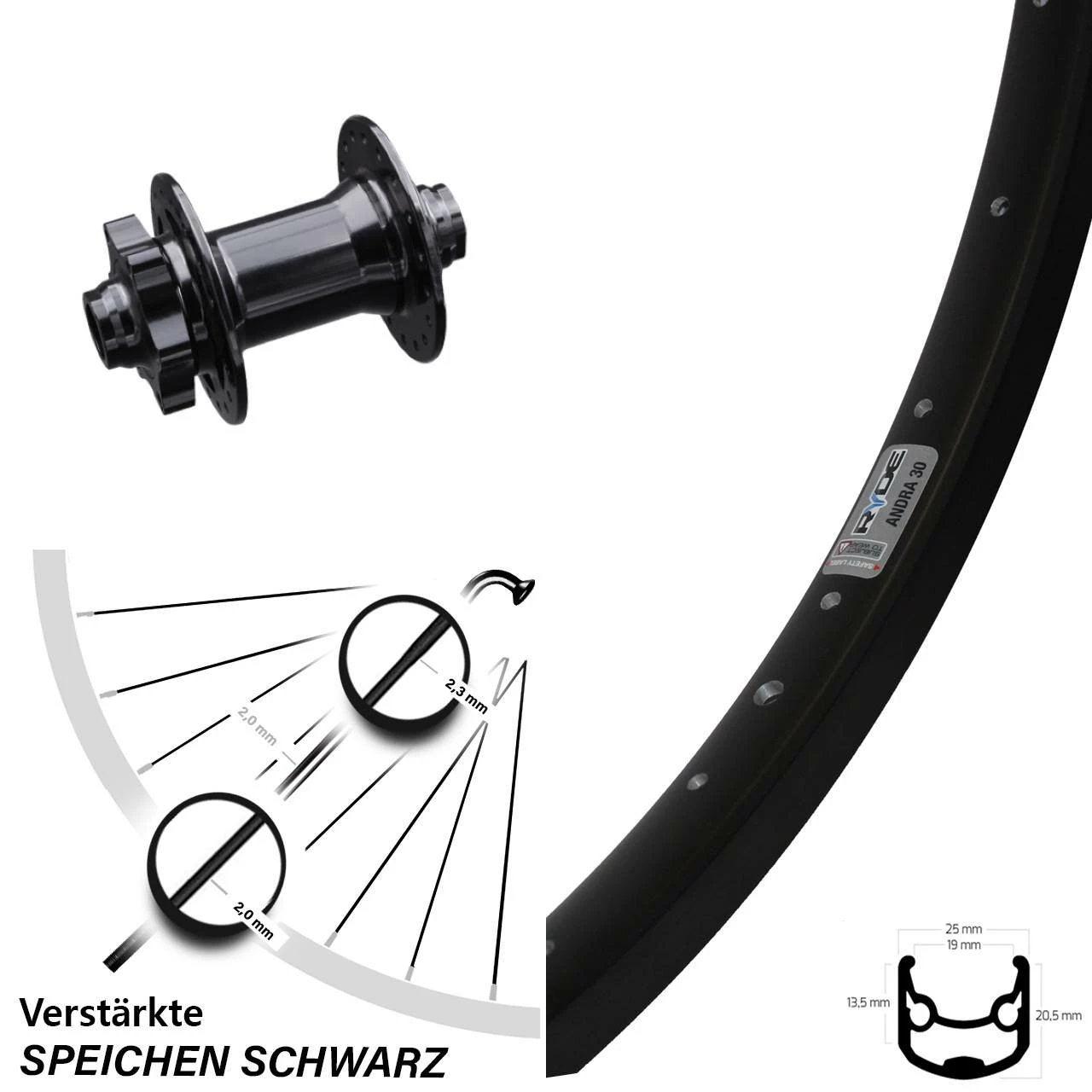 Technische Daten Vorderrad Ryde Andra 30 Disc schwarz mit Nabe Formula DHDC-71 schwarz