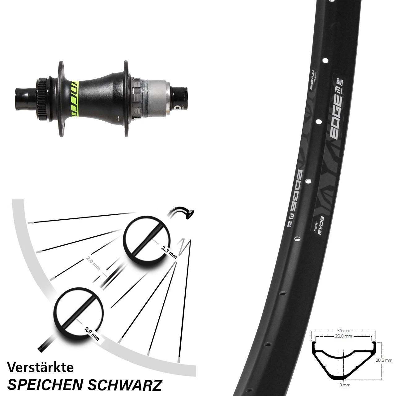 Dieses zuverlässige 29 Zoll, 29+ Zoll Hinterrad ist speziell auf Rädern mit Centerlock Scheibenbremsen ausgelegt und lässt sich ideal mit Kettenschaltungen einsetzen. Es kann mit einem zulässigen Systemgewicht von bis zu 120 kg beansprucht werden. Es sind 32 Speichen, eine schwarze Ryde Edge M30 OS Disc schwarz Felge und eine schwarze Formula CL-1421 Syncros XD Nabe in das Hinterrad verbaut. Die Felge ist mit einer Ventillochbohrung von 6,5 mm ausgestattet. Seine ETRTO Größe liegt bei 30-622 mm und die Einbaubreite bei 142 mm. Das Formula Syncros Sram XD Ryde Edge M30 OS Hinterrad 29 Zoll Centerlock dient Ihnen sowohl auf befestigten Wegen, als auch auf unebenen Untergründen im Gelände als sicherer Begleiter und spendet Ihrem Bike den nötigen Halt! Es wird im E-Bike bis 25 km/h Bereich eingesetzt.