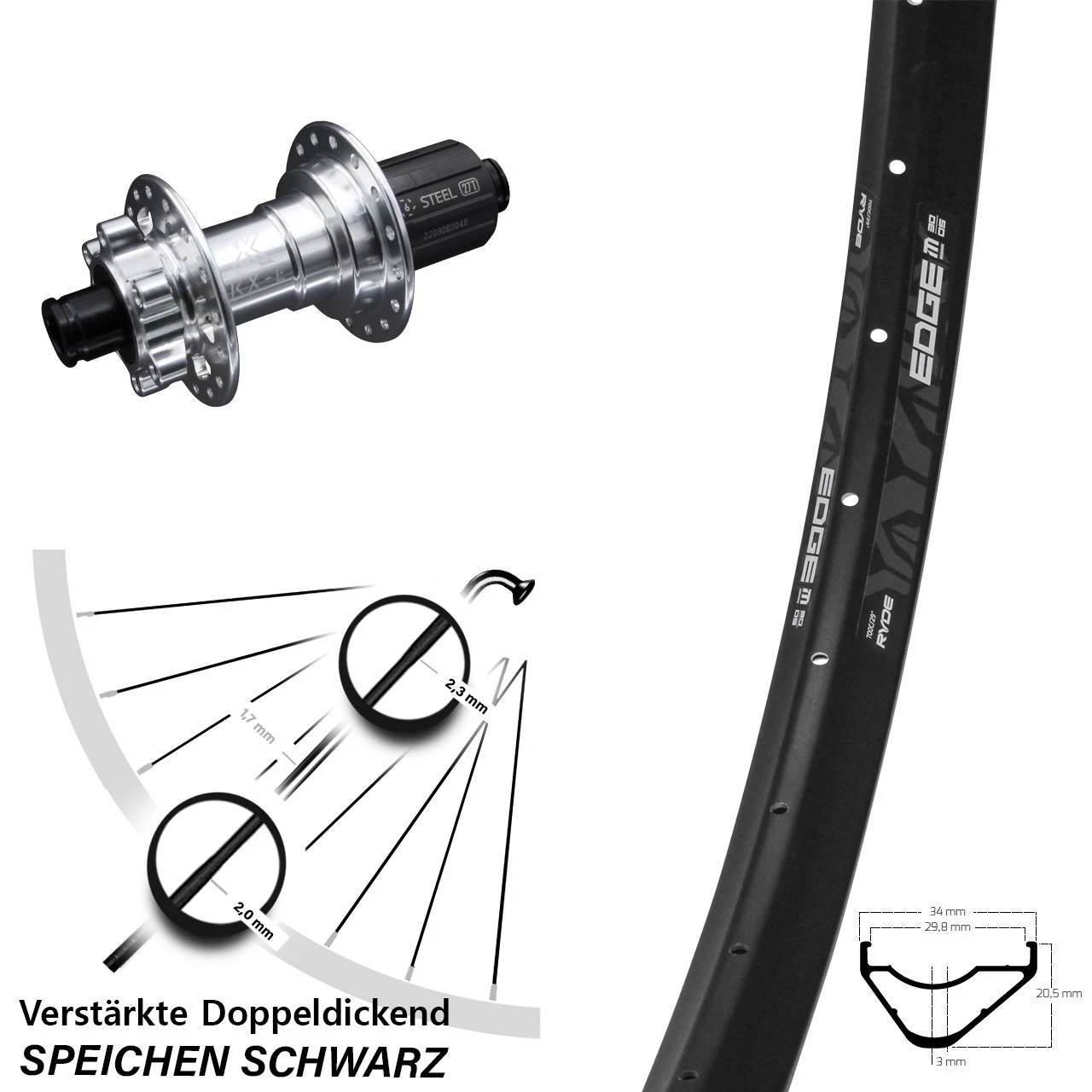 Technische Daten Hinterrad Ryde Edge M30 OS Disc schwarz und Nabe KX-E Hinterradnabe 6-Loch 12/142 Shimano 11-fach silbern
