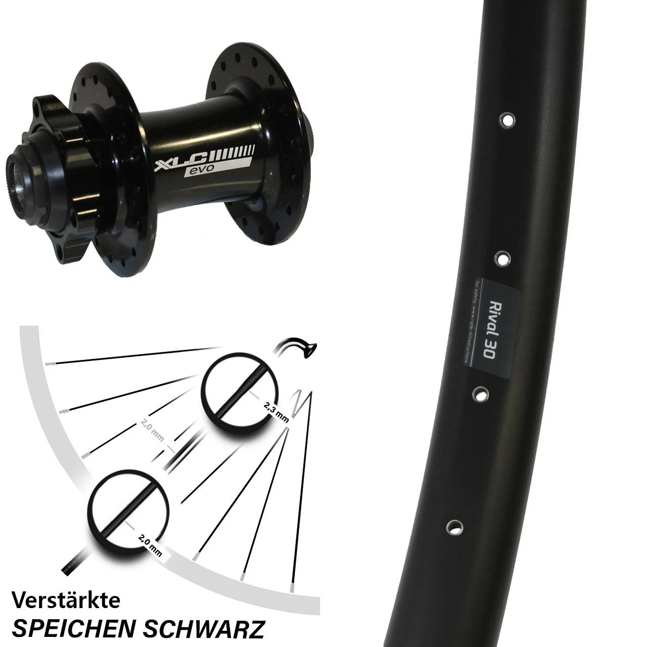 Technische Daten Vorderrad Ryde Rival 30 Disc schwarz mit Nabe XLC Evo Disc schwarz Steckachse