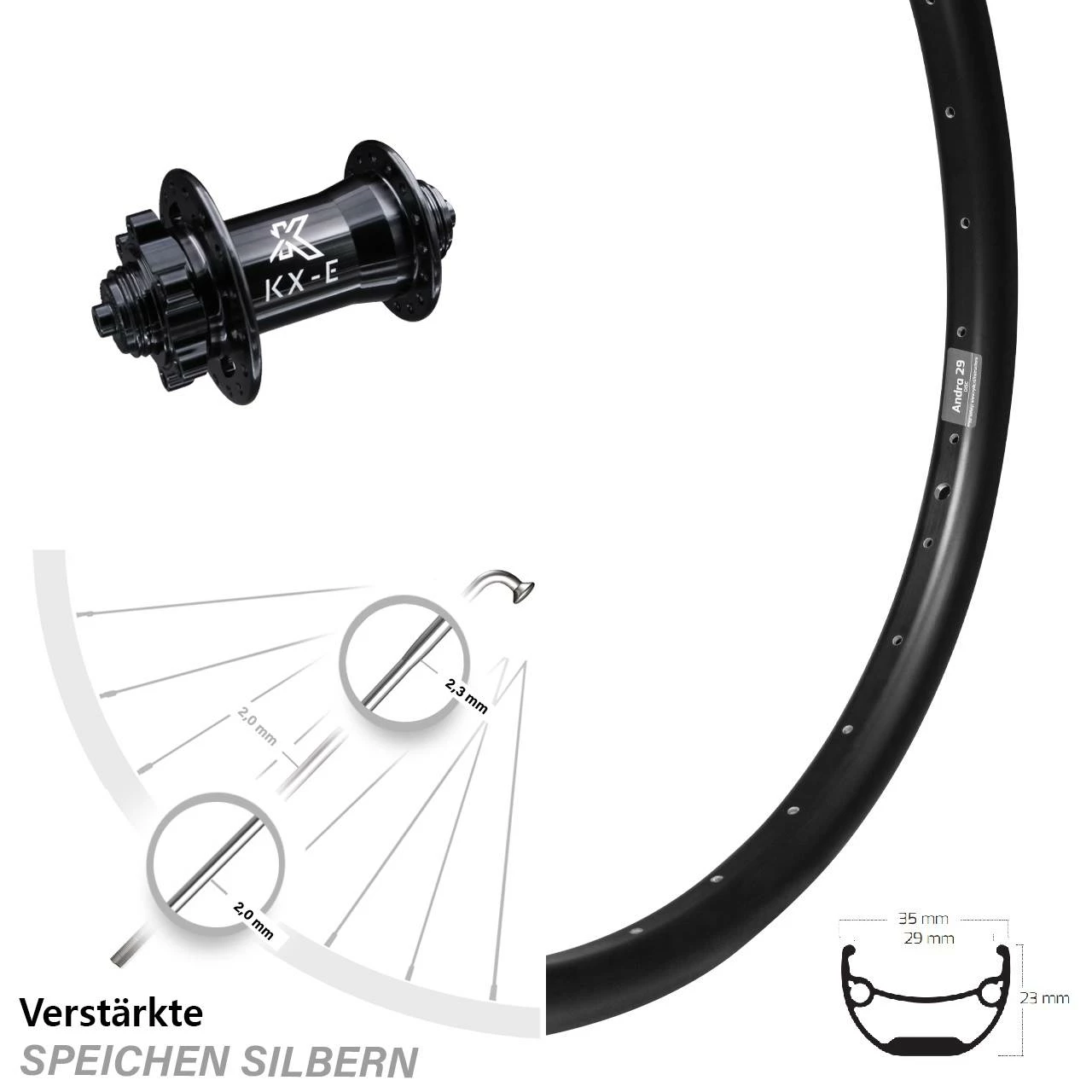 - Nabe: KX-E Vorderradnabe 6-Loch 5/100 mm schwarz