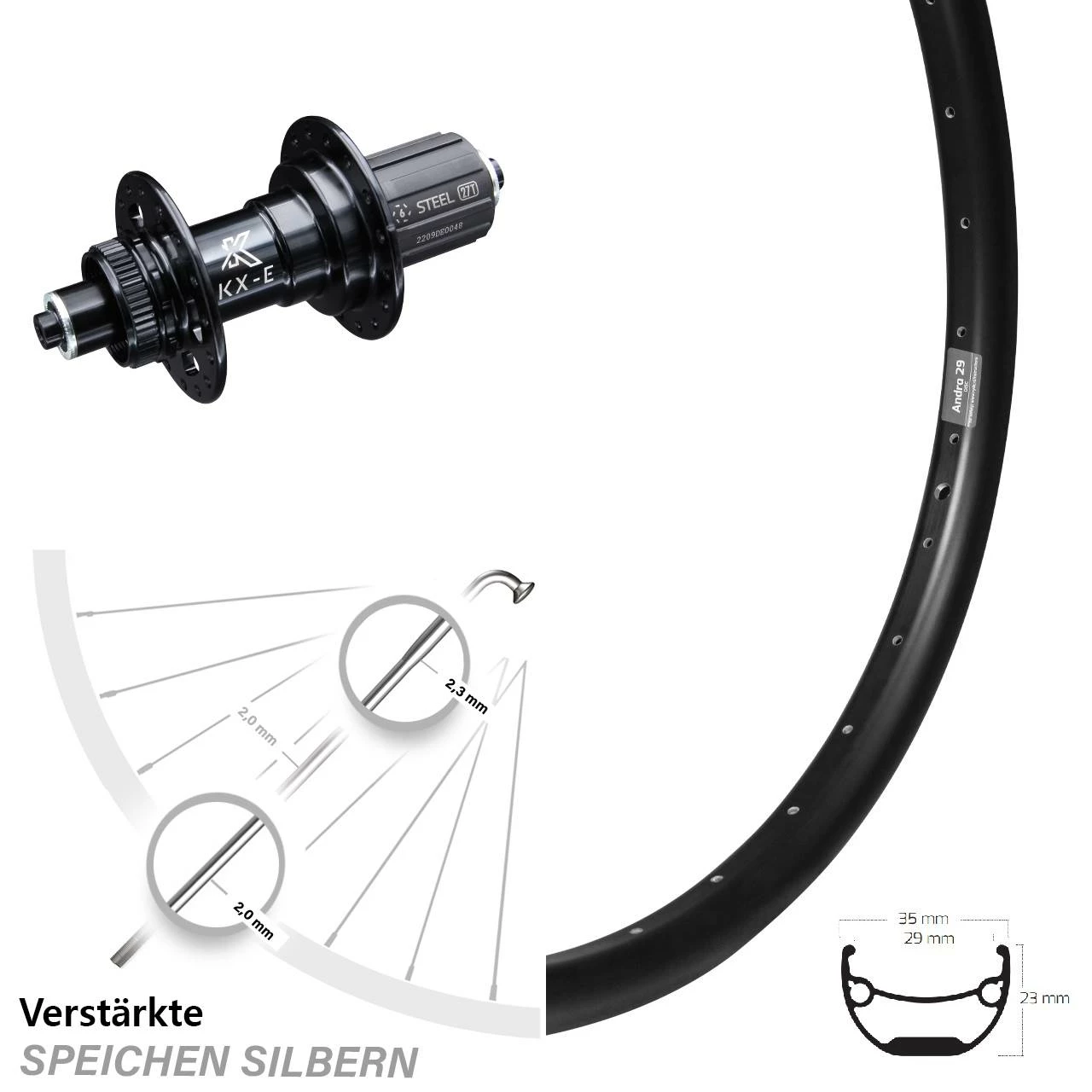Technische Daten Hinterrad Ryde Andra 29 Disc schwarz und Nabe KX-E Hinterradnabe Centerlock 5/135 Shimano 11-fach schwarz