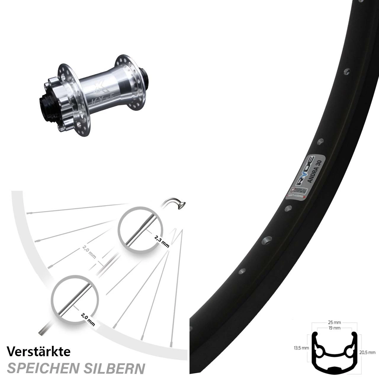 Technische Daten Vorderrad Ryde Andra 30 Disc schwarz mit Nabe KX-E Vorderradnabe 6-Loch 15/100 silbern