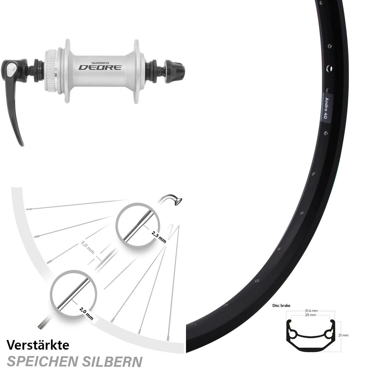 - Vorderrad 28 Zoll Ryde Andra 40 Disc mit Nabe Shimano HB-M595 silbern