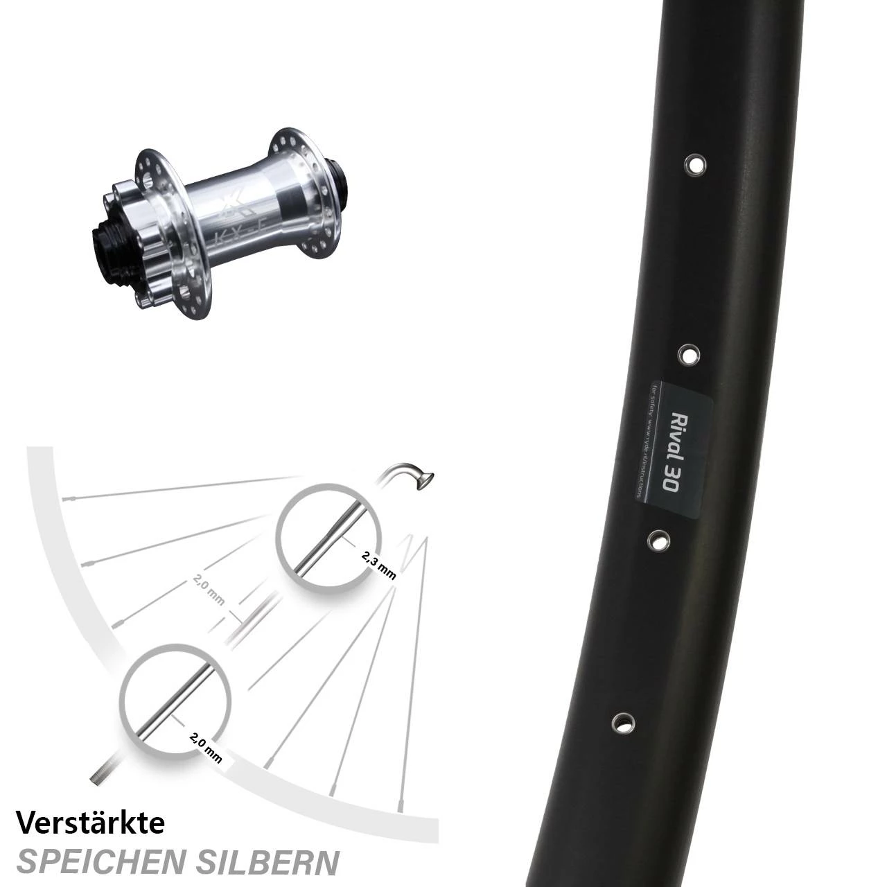 - Vorderrad KX-E Nabe silbern 15×100 mm 6-loch Ryde Rival 30 Disc 27,5 Zoll für Steckachse