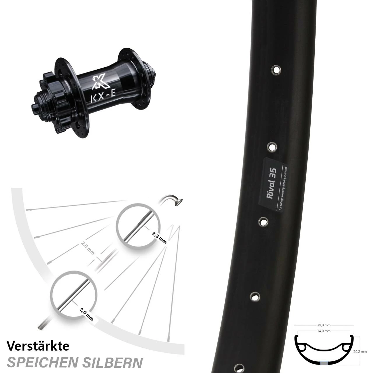 mit empfohlener Reifenbreite 56-76 mm - Nabe: KX-E Vorderradnabe 6-Loch 5/100 mm schwarz